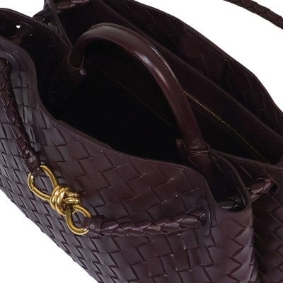 Top handle bag in supple Intrecciato leather with signature knot detail and sliding cross-body strap.