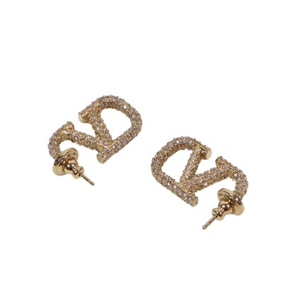 Earrings realized in gold-tone plated metal entirely covered by Swarovski crystals.