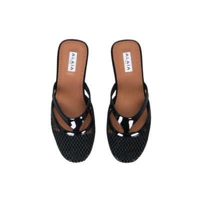 Infradito Flat Mules in Fishnet And Leather