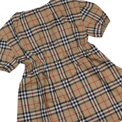 This cotton dress from Burberry Kids is highlighted with the house's check and styled with an elasticated waist and cuffs.