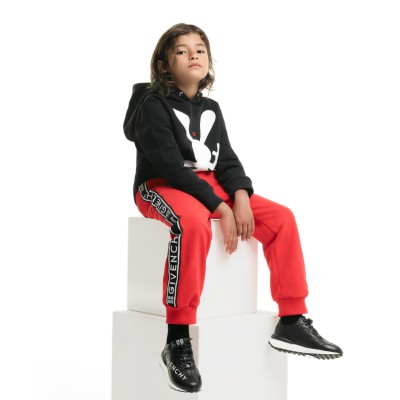 Teaming up to create a capsule collection, Givenchy Kids and Disney harness the power of some of the latter's icons to create whimsical pieces. Case in point: this black hoodie. It is stamped with a silhouette print of Oswald the Lucky Rabbit and the Cinderella Castle. Logo embroidery completes it