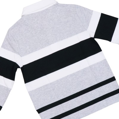 Kids Polo Longsleeve Chine Grey Stripe Black Logo