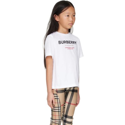 Presenting its unique twist on the classic T-shirt, this distinctive piece by Burberry Kids boasts contrast logo branding to the front and hints to the label’s heritage in Westminster, London.