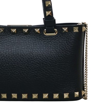 - Valentino Garavani Rockstud mini shopping bag in grainy calfskin. The bag may be handheld or worn over the shoulder/crossbody thanks to the handles and the detachable chain.