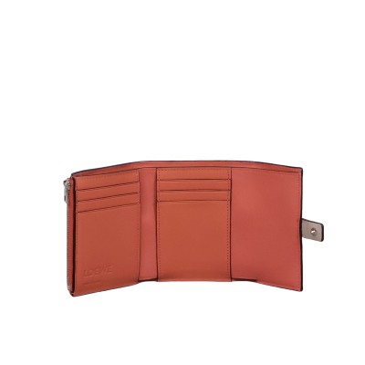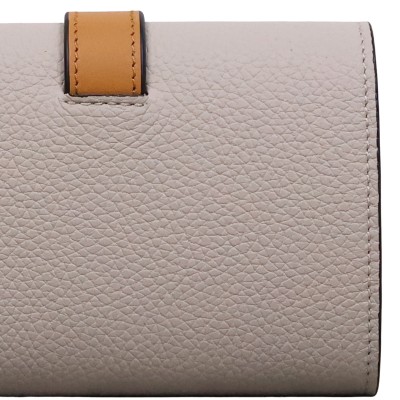Small vertical wallet in soft grained calfskin in contrasting colors.
