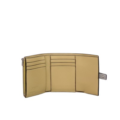 Small vertical wallet in soft grained calfskin in contrasting colors.
