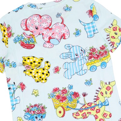 Cotton jersey T-shirt with allover Calico Animals print and logo embroidered with zig zag stitch